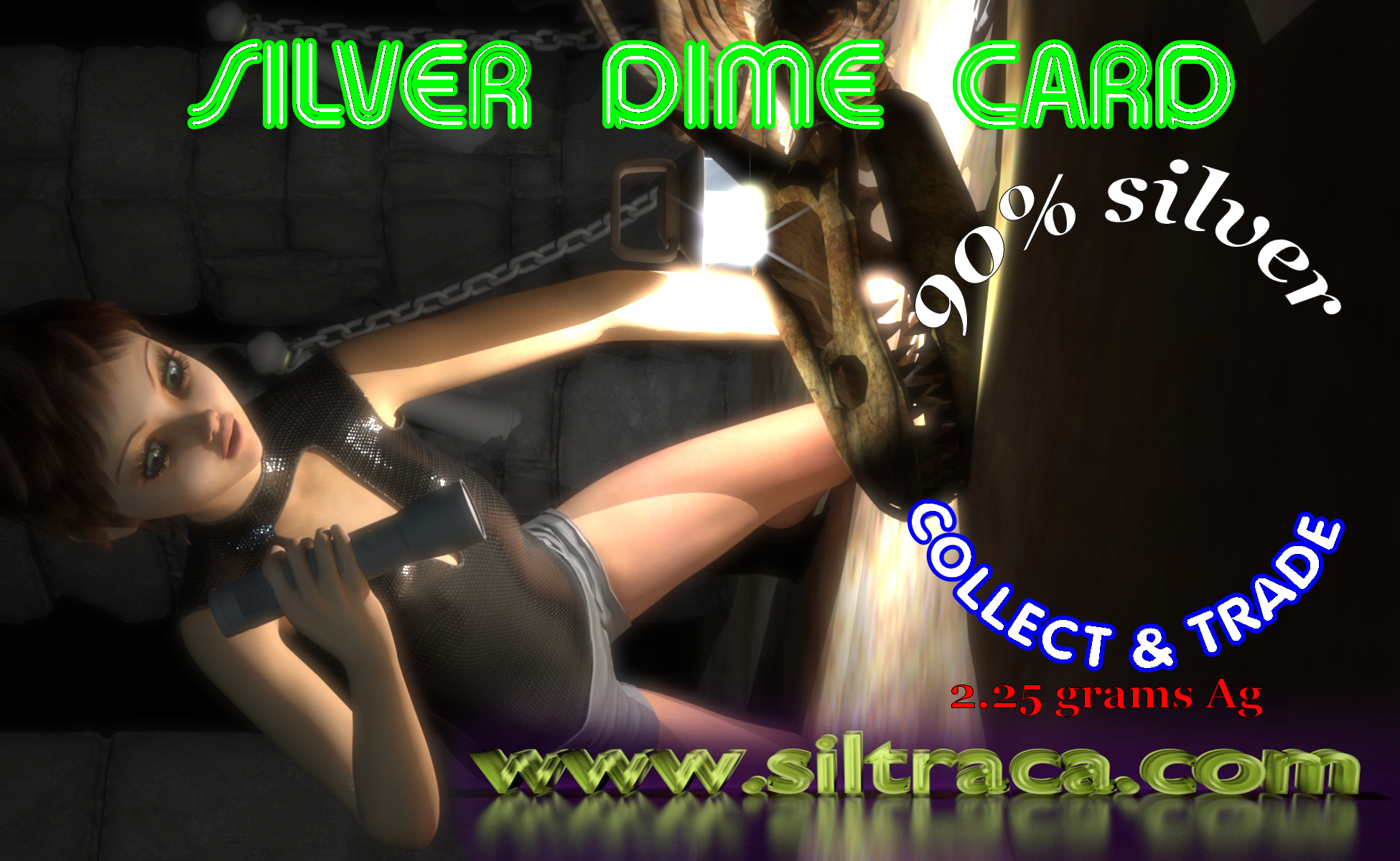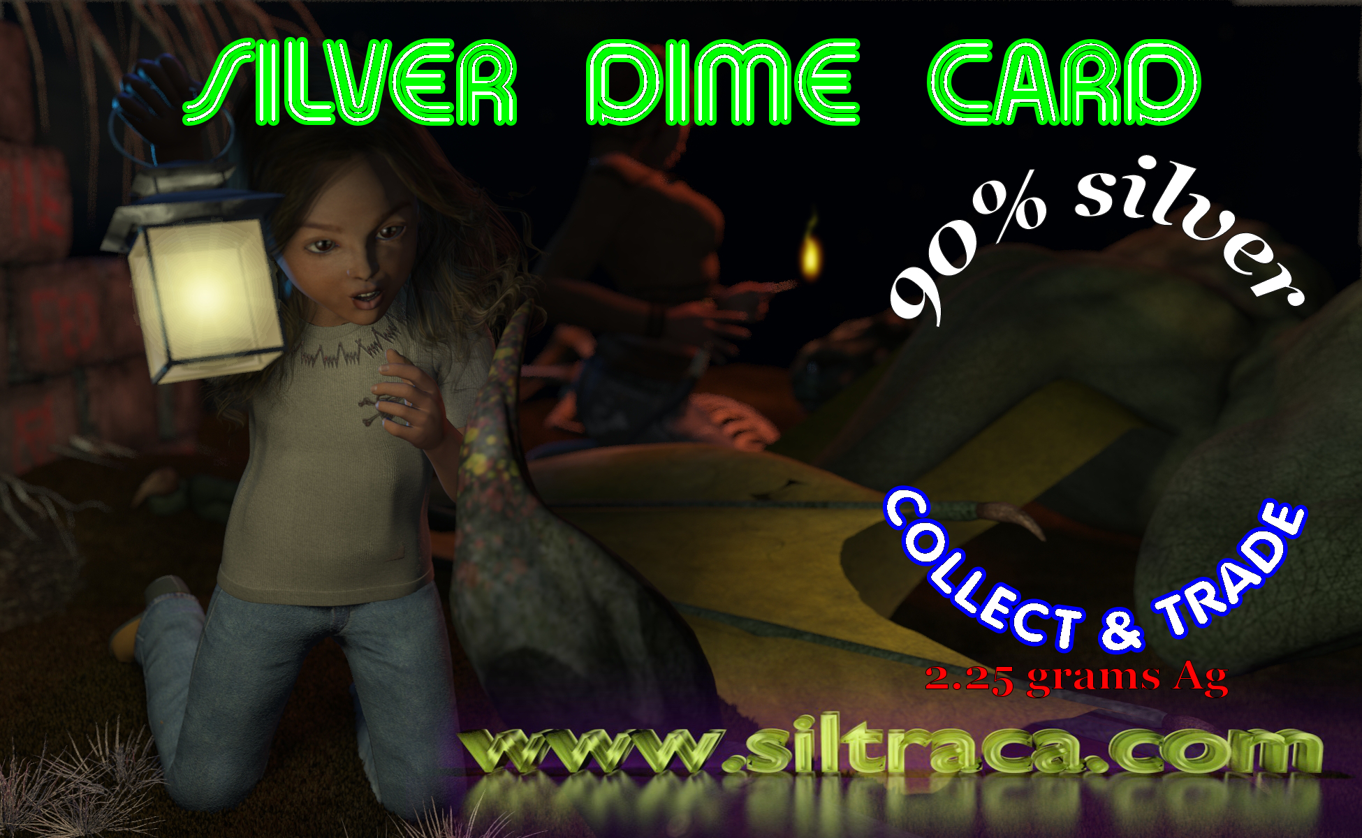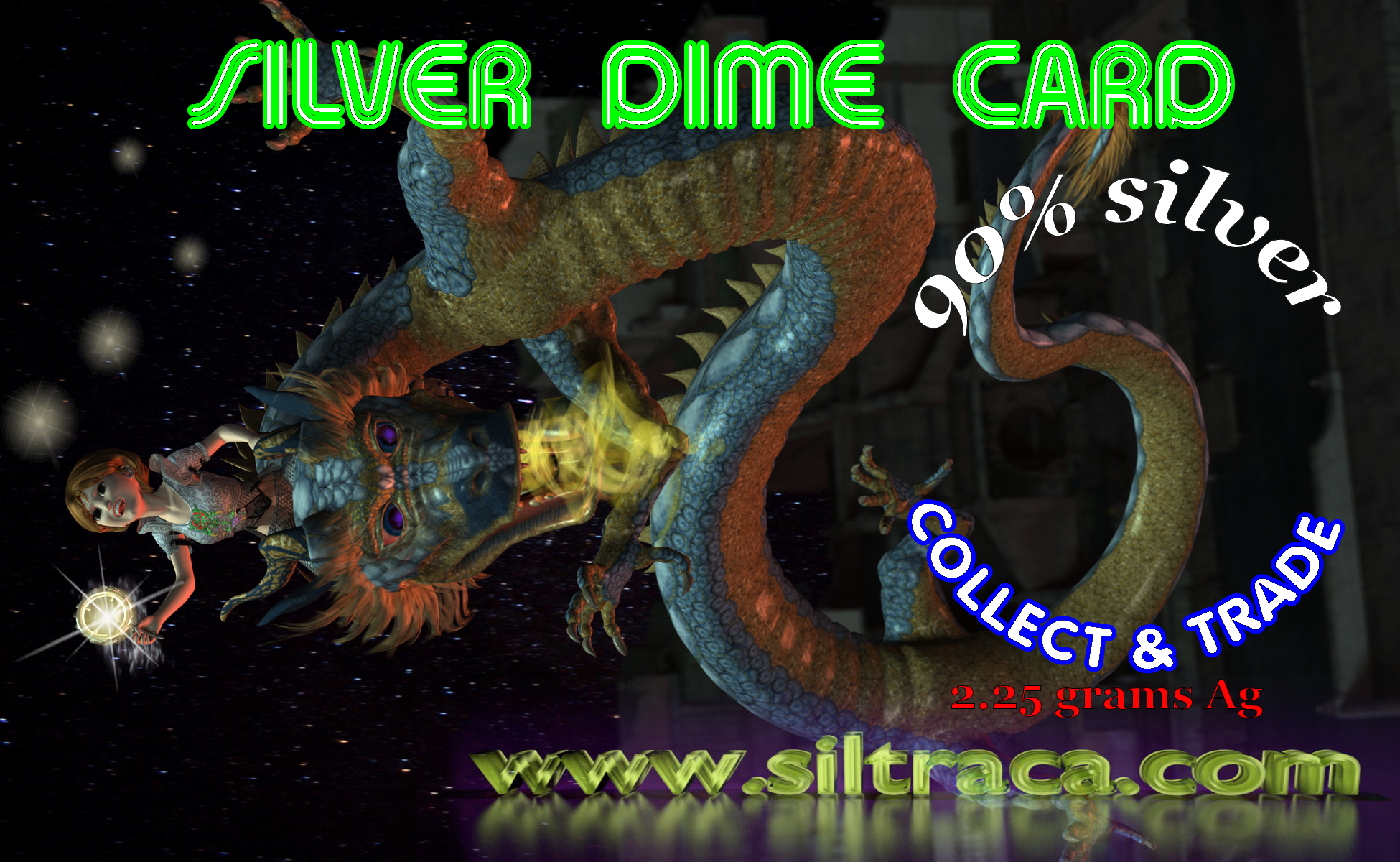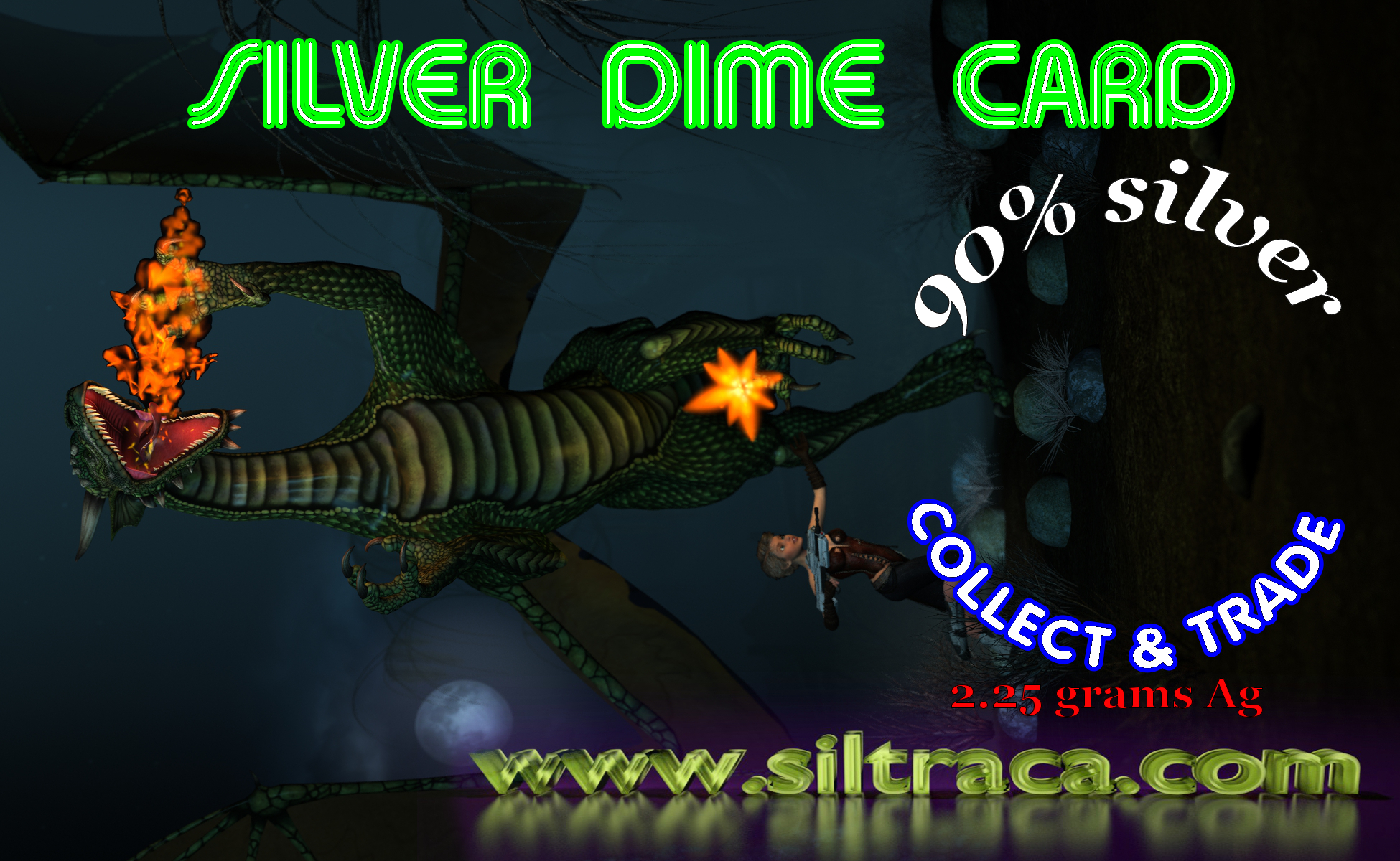 SilTraCa’s very first series (s1) and book (b1). This is the second version (v2), released in 2014, comprising nine different card designs. New in this version: Nine different rear (tail) designs; nine different front (head) designs. Production limited to 99 of each design, all art by Jonny Stryder. All other qualities as described on SilTraCa’s home page for Liberty Dime Cards. The nine different back designs and nine different front designs are shown below. Photographs of finished cards may be viewed at the artist’s e-commerce site (Etsy).